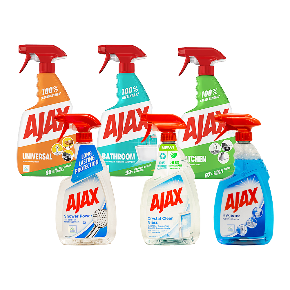 Gør rengøringen nem og effektiv med Ajax’ populære sprays til hele hjemmet. Vælg den variant, der passer til dit behov, uanset om du skal have styr på fedt i køkkenet, kalk i brusekabinen eller bare vil efterlade glas og overflader skinnende rene. Alle varianter efterlader en frisk duft og en følelse af renhed.