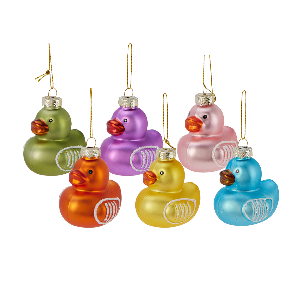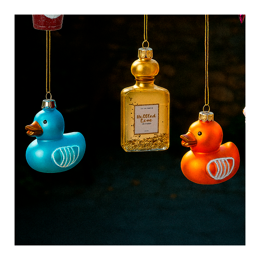 Tilføj et humoristisk twist til juletræet med et badeand ornament. De fås i 6 forskellige varianter og spreder både smil og farve blandt den klassiske julepynt. Perfekt til dig, der elsker lidt skæv og sjov julehygge. 7,6 cm.