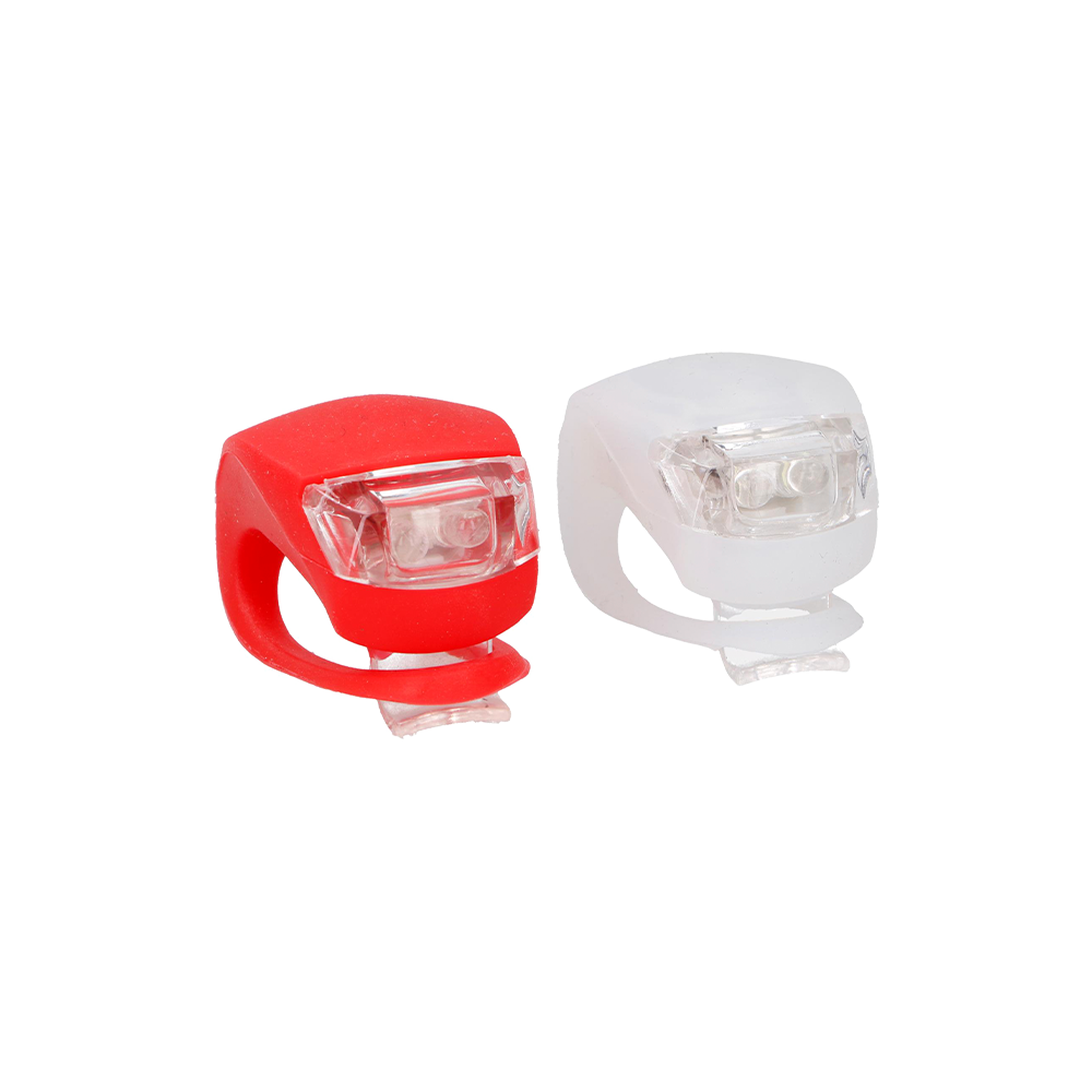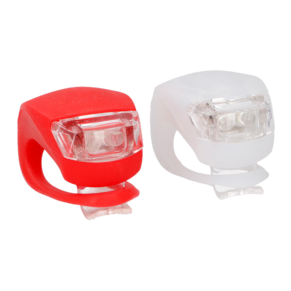 Fleksible LED-cykellygter i silikone med hvid og rød lygte. Prisen er pr. pakke.
