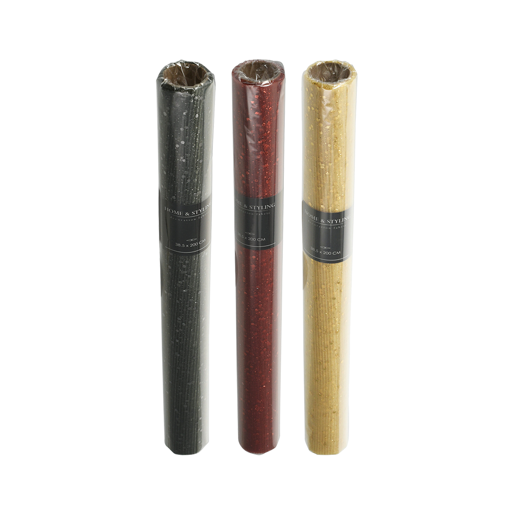 Pynt op til jul med glimt og glamour. Dette dekorationsstof med glitter og pailletter giver et festligt skær til både julebord, vinduespynt og kreative projekter. Brug det som bordløber, gaveindpakning eller til DIY-dekorationer, hvor der gerne må være lidt ekstra glans. 38 x 200 cm.