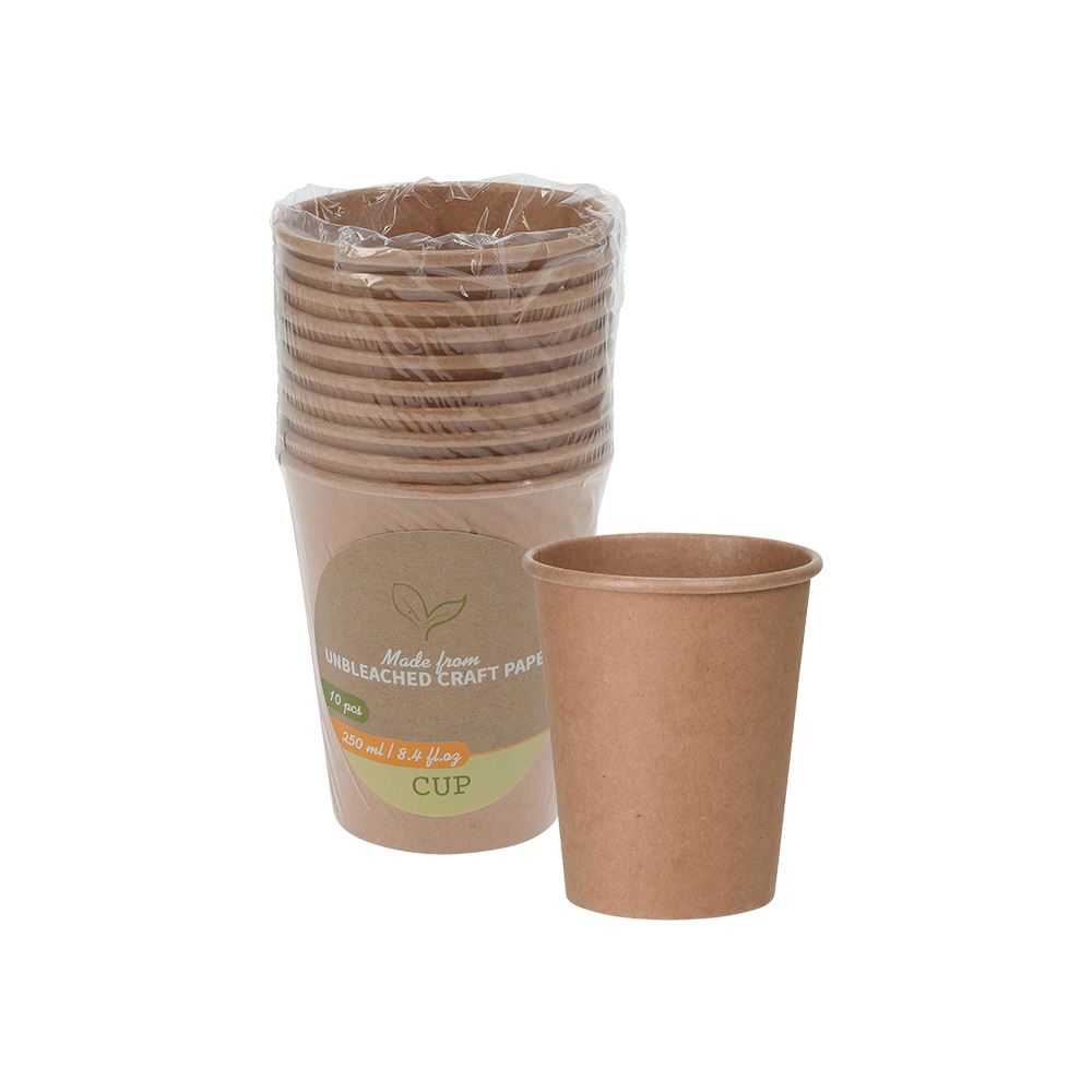 Disse ublegede engangskopper rummer 250 ml og har et naturligt, miljøvenligt udtryk. De er velegnede til både varme og kolde drikke og passer perfekt til alt fra kaffe og te til juice og sodavand. En god løsning til møder, picnic, fødselsdage eller kontoret – uden plastik og med god samvittighed.