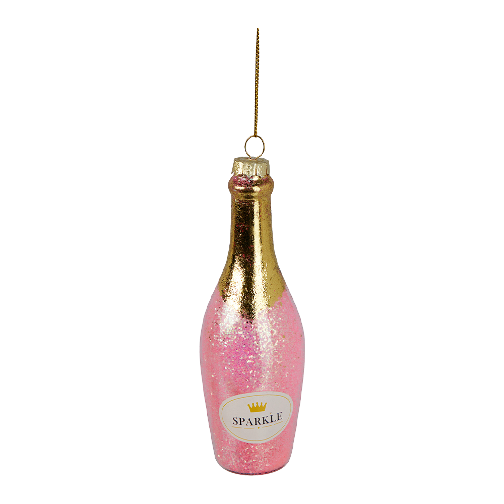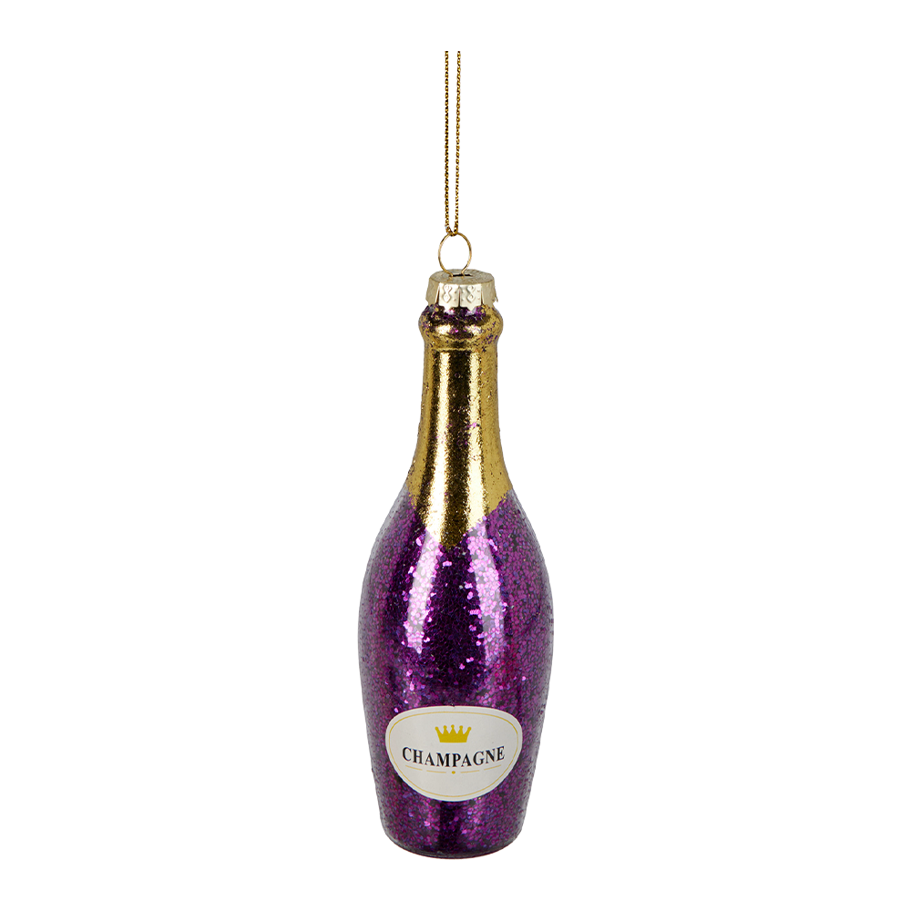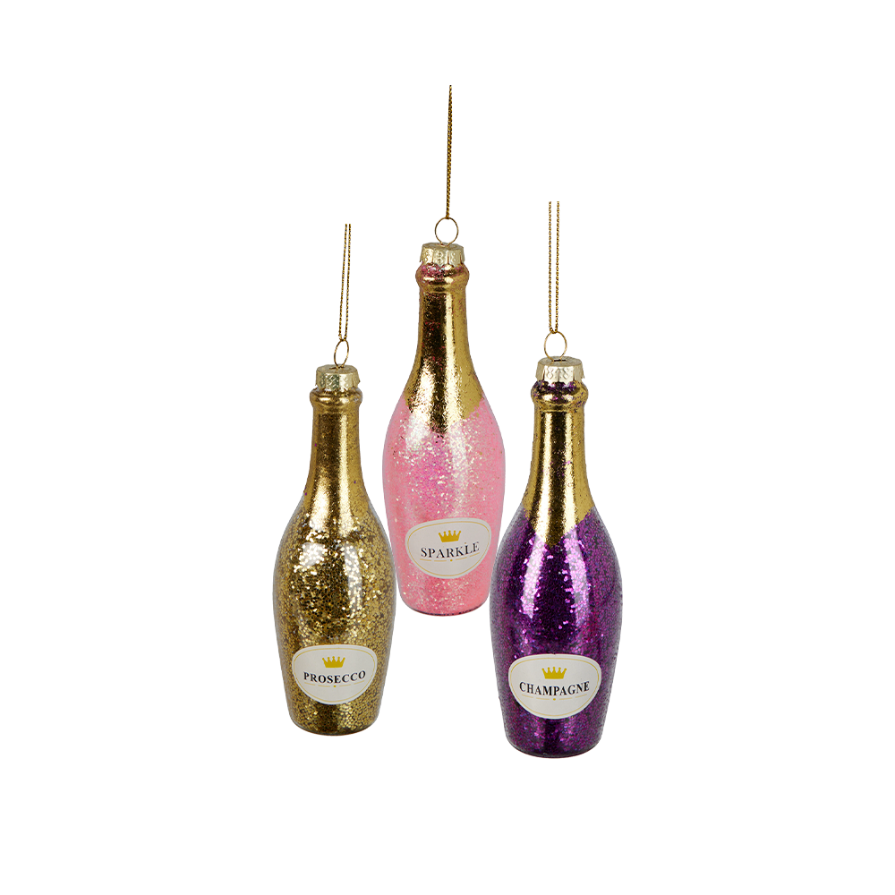 Tilføj lidt humor og glimt til juletræet med et flaskeformet ornament. De fås i 3 varianter og giver et festligt twist blandt den klassiske pynt. Perfekt til julefrokoster, værtindegaver eller som en lille overraskelse på træet. 14 cm.