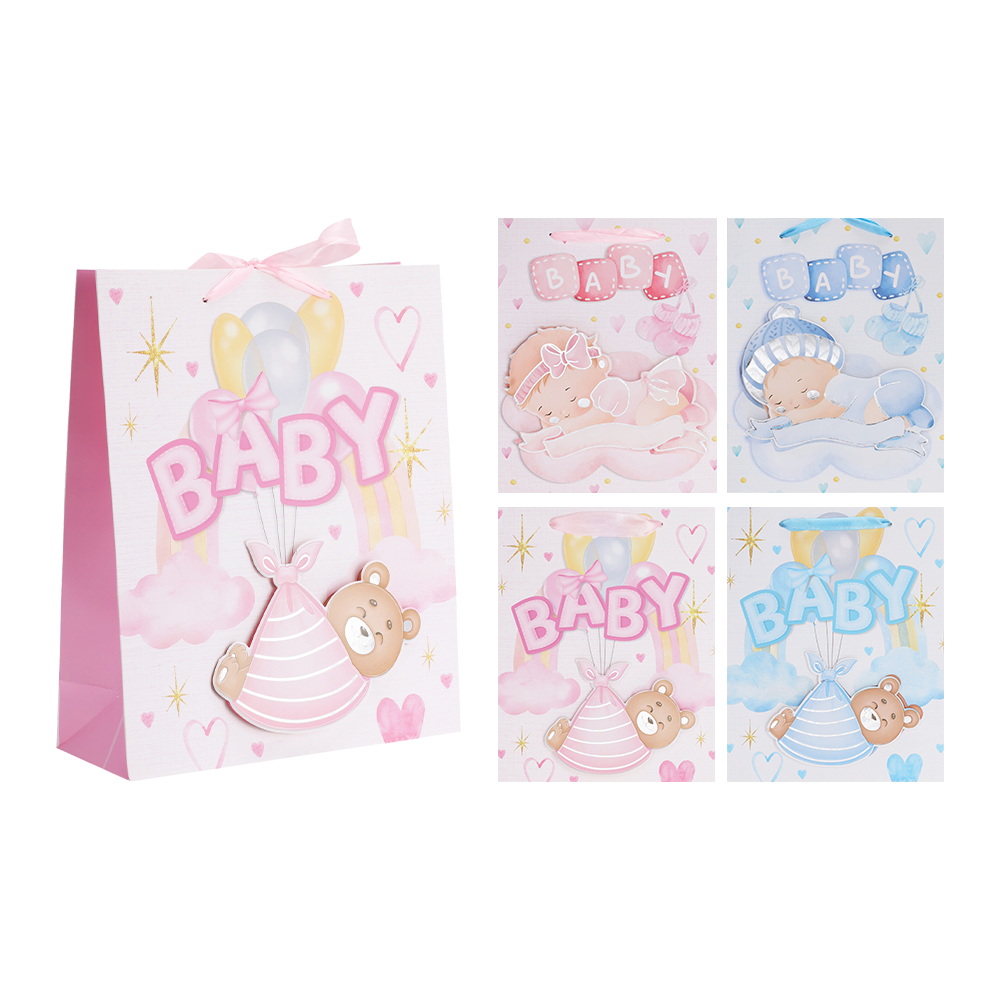 Pak gaven fint ind på få sekunder med denne store gavepose i babytema. Den måler 40 x 30 x 12 cm og er perfekt til barselsgaver, baby shower eller barnedåb. Motiverne varierer, men alle poser har et nuttet og blødt udtryk, der passer til den særlige anledning. Praktisk, pæn og klar til at glæde de nybagte forældre.