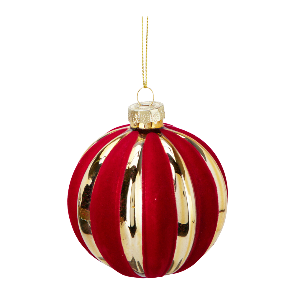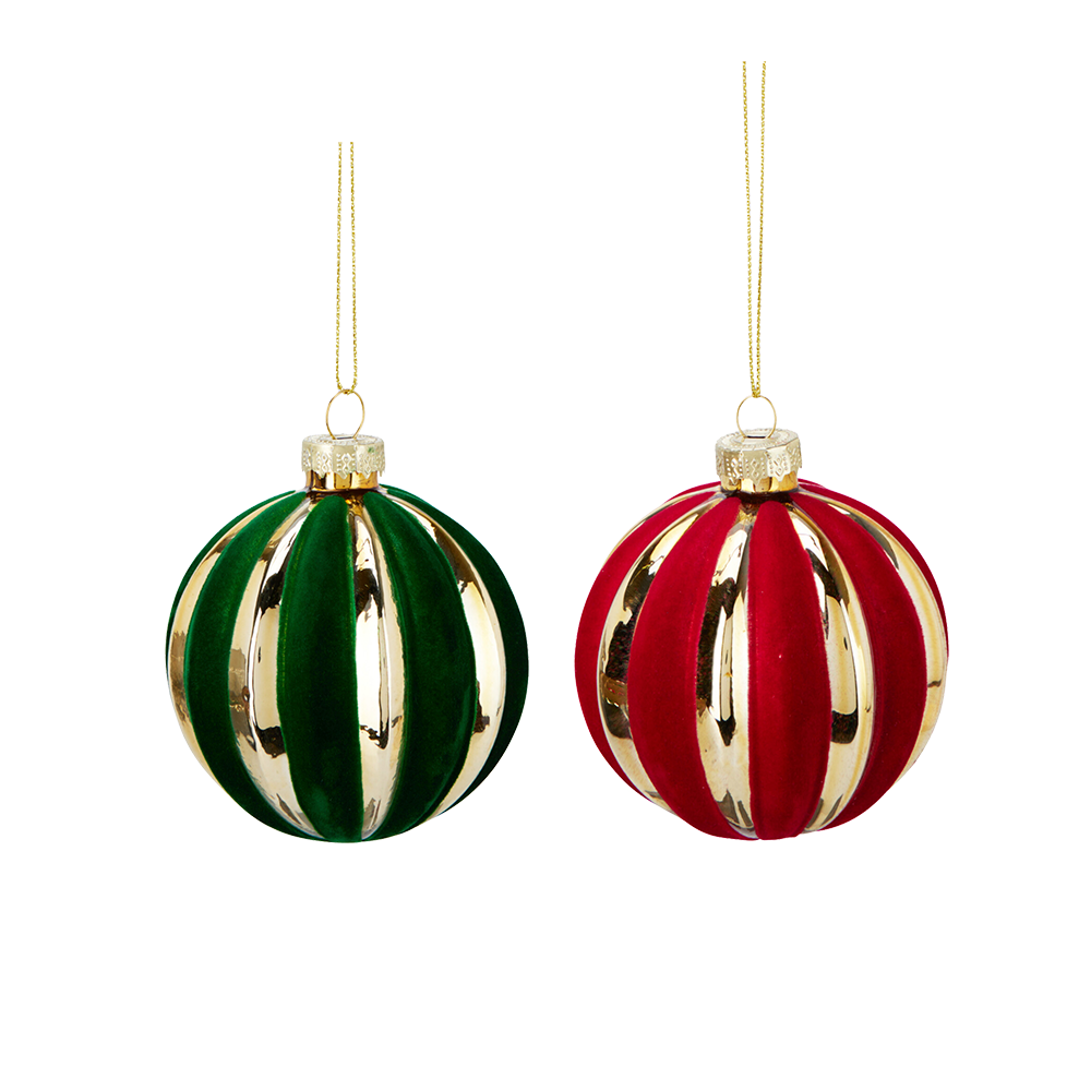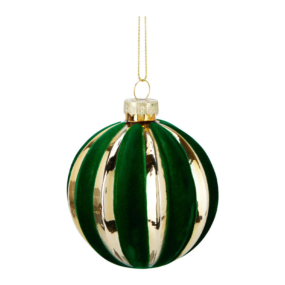 Klassisk julekugle med stribet design, der giver et elegant og tidløst udtryk på juletræet. Fås i 2 farver, så du kan mikse og matche for at skabe dit eget personlige look. Perfekt til både traditionelle og moderne juletemaer. Ø. 8 cm.