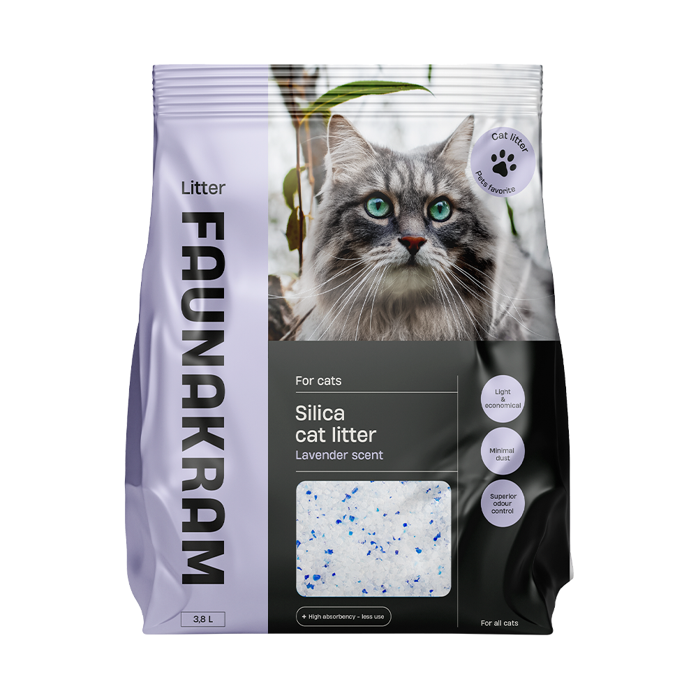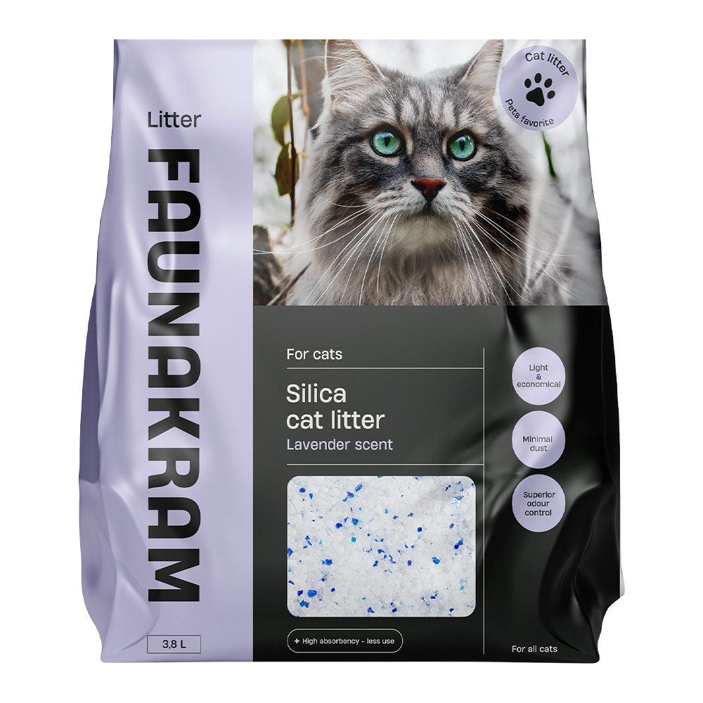 Silicakattegrus med lavendelduft, der effektivt absorberer fugt og lugt. Prisen er pr. pose.