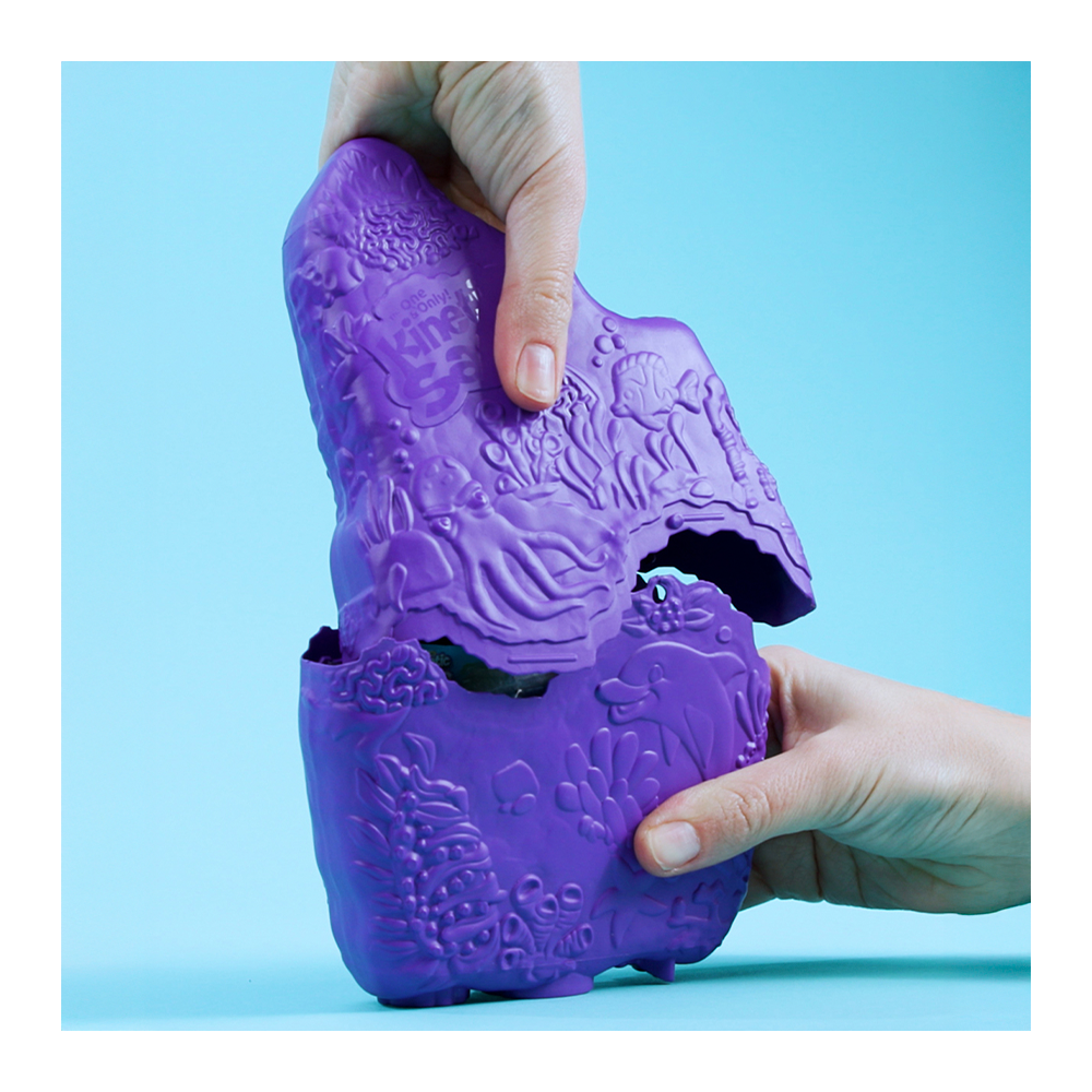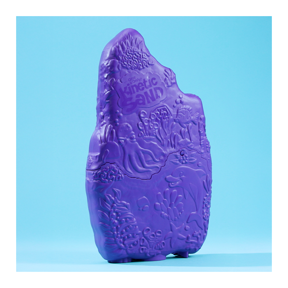 Legesæt med farverig Kinetic sand og gemmested til figurer. Prisen er pr. stk.