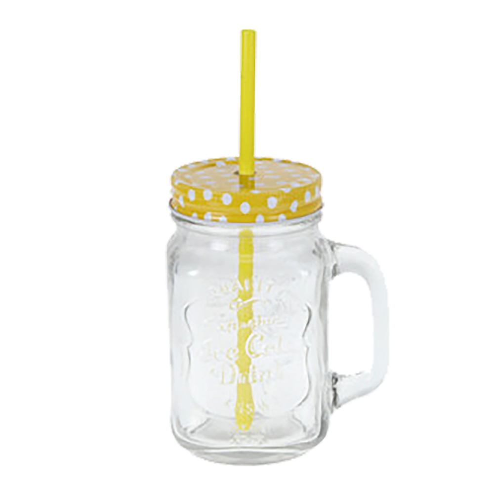 Server dine kolde drikke med stil i dette charmerende glaskrus med farvet låg og sugerør. Kruset rummer 450 ml og har en praktisk hank, så det er nemt at holde – perfekt til alt fra iste og lemonade til smoothies eller drinks. Låget hjælper med at holde insekter ude på terrassen, og sugerøret gør det ekstra børnevenligt. Et festligt og funktionelt valg til både hverdag og sommerhygge.