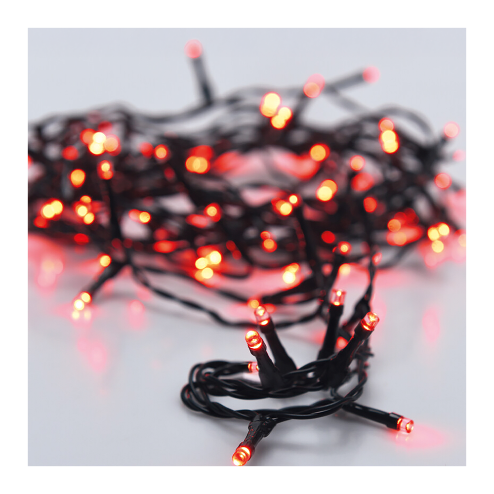 Sæt farve på vintermørket med en lyskæde med 120 røde LED-lys. Den har 8 lysfunktioner og timer, så du nemt kan styre lyset. Perfekt til at pynte altaner, buske eller træer og skabe en varm, juleagtig glød udendørs. IP44 adapter medfølger.