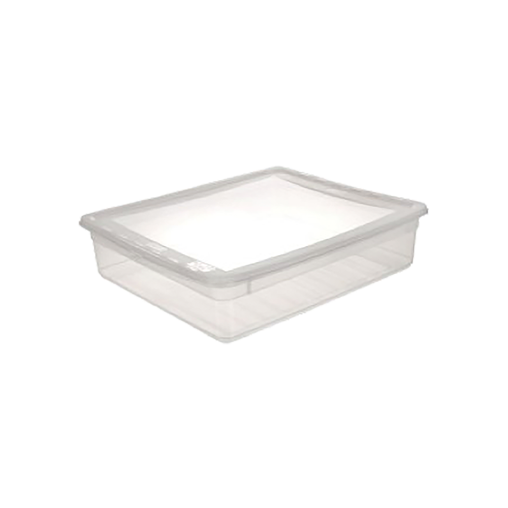 Organisér hjemmet med denne lave, men rummelige opbevaringsboks fra Keeeper. Boksen har et volumen på 9 liter og måler 39 x 33,5 x 9 cm – perfekt til opbevaring under sengen, i skabet eller i skuffer. Det klare plast giver godt overblik, og låget holder indholdet sikkert og støvfrit. Ideel til alt fra papir og hobbyting til legetøj og tekstiler.