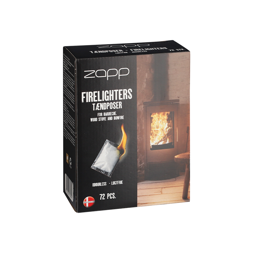 Gør optænding nem og effektiv med Zapp optændingsposer. Du får hele 72 poser, der er nemme at tænde og perfekte til både grill, brændeovn og bålsted. De er lugtfrie og praktiske at håndtere – ingen fedtede hænder eller stærk kemisk lugt. En god løsning til både hverdag og udendørs hygge.