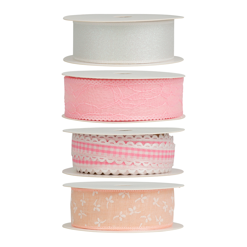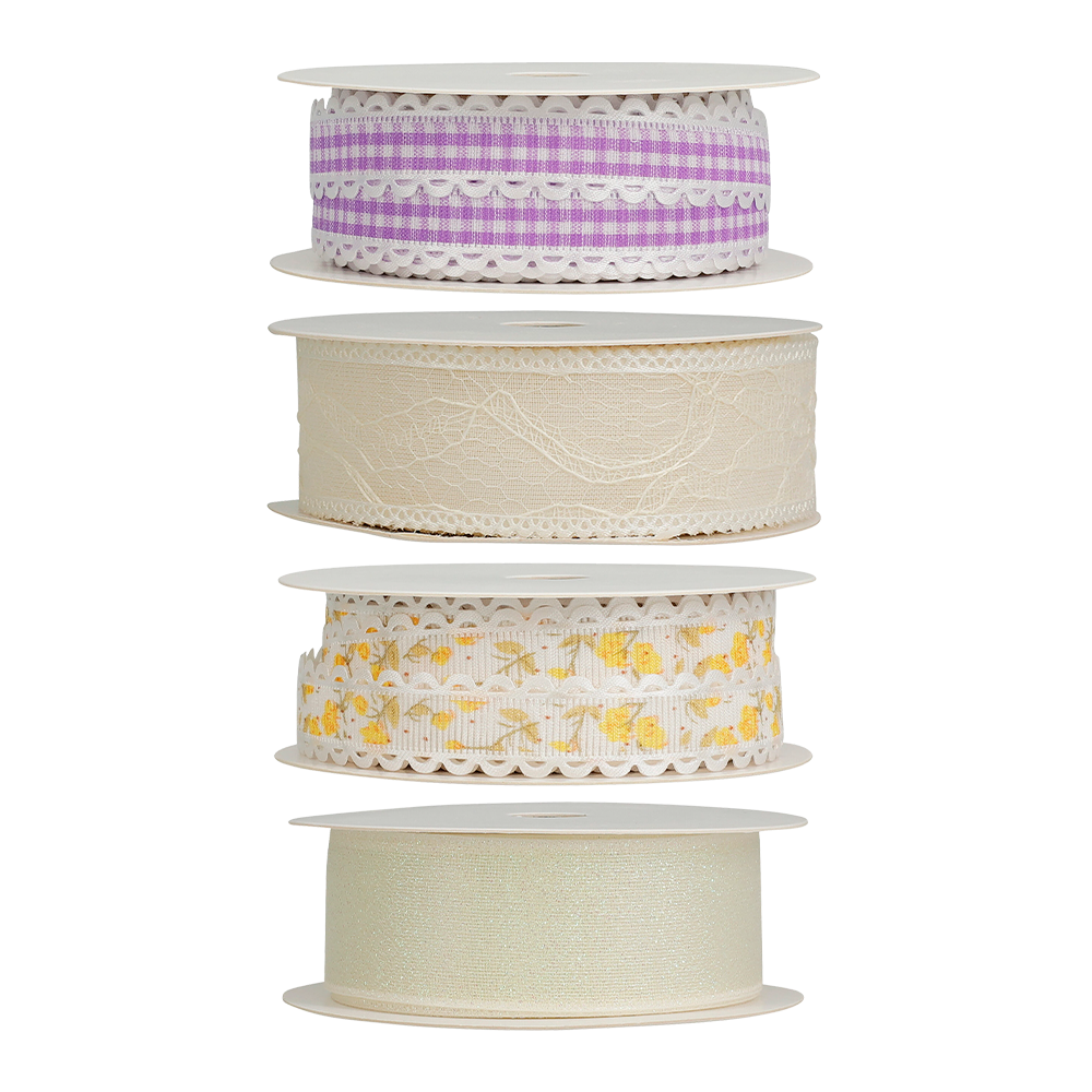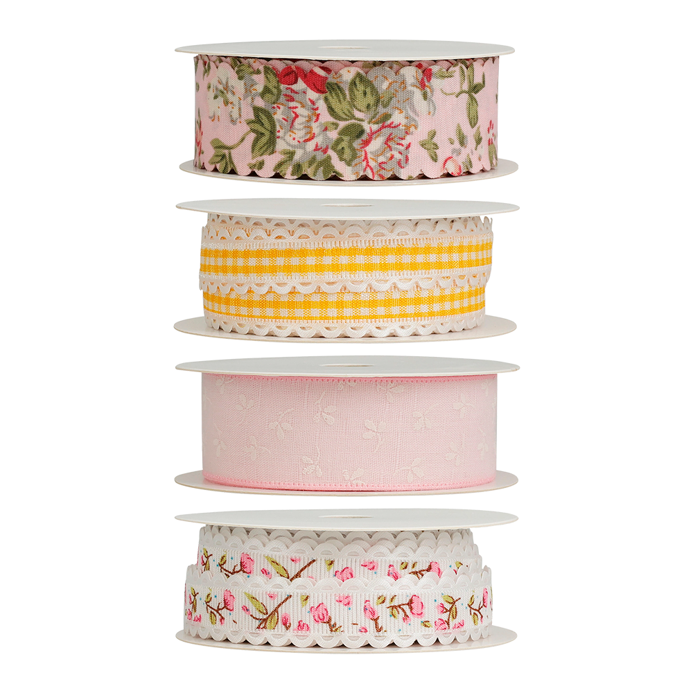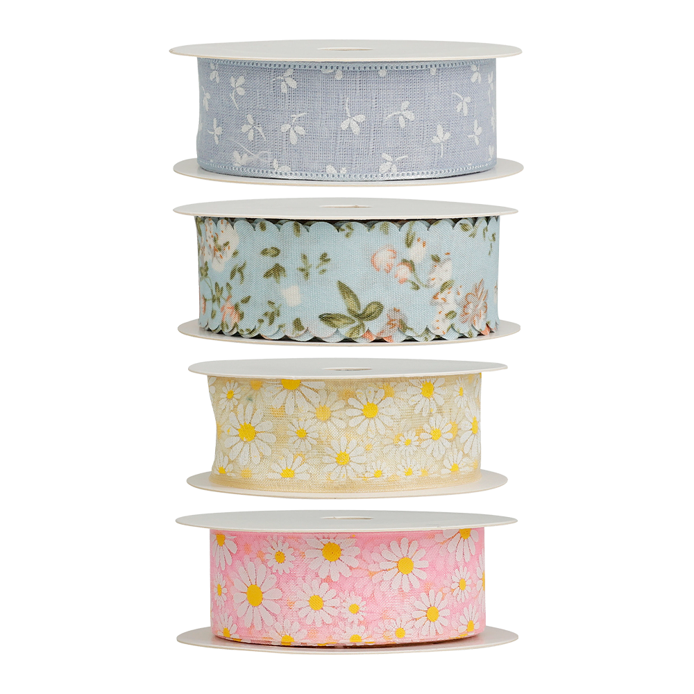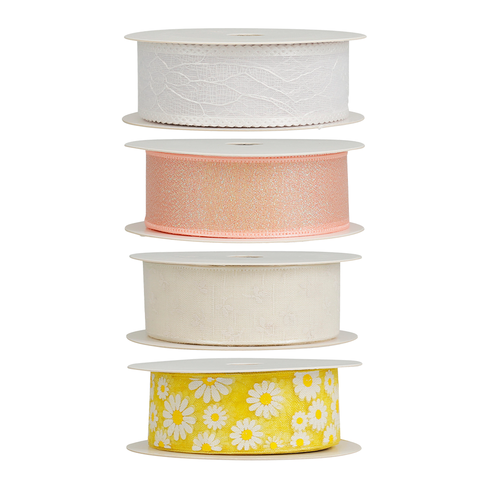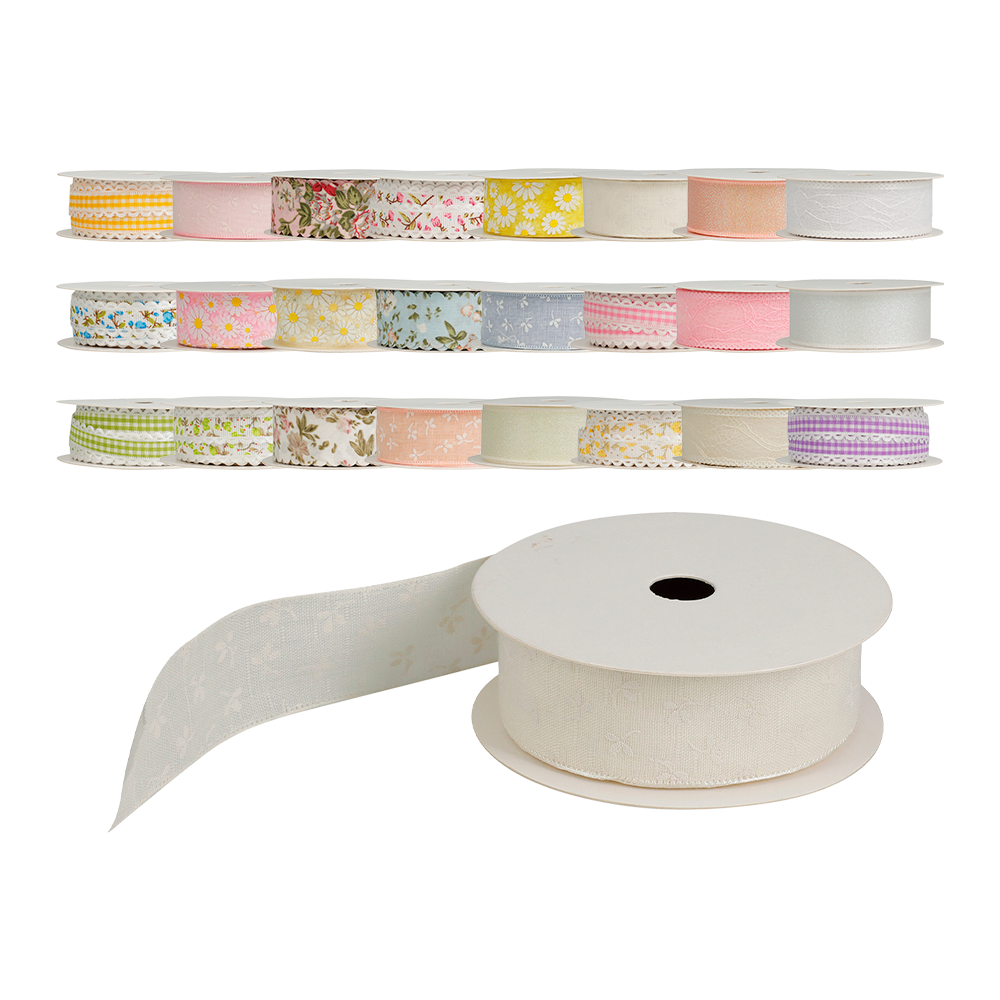 Dekorativt ribbånd i polyester med forårs- og påskeinspirerede designs. Ribbåndet egner sig til gaveindpakning, dekorationer og kreative projekter, hvor der skal tilføjes farve og detaljer. Leveres i flere varianter med forskellige mønstre og udtryk. 250 cm. Vægt 20 g.