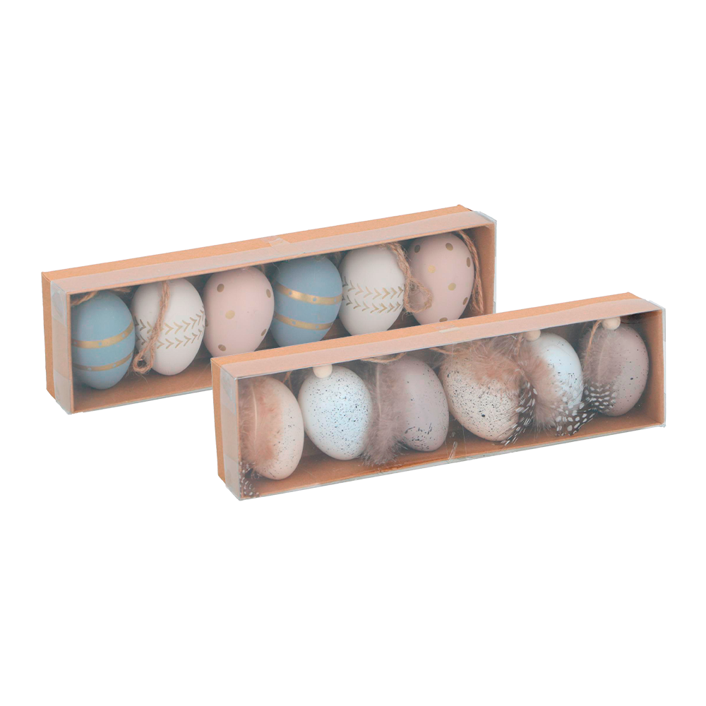 Dekorative påskeæg i 2 varianter. 6 stk. Prisen er pr. rør.