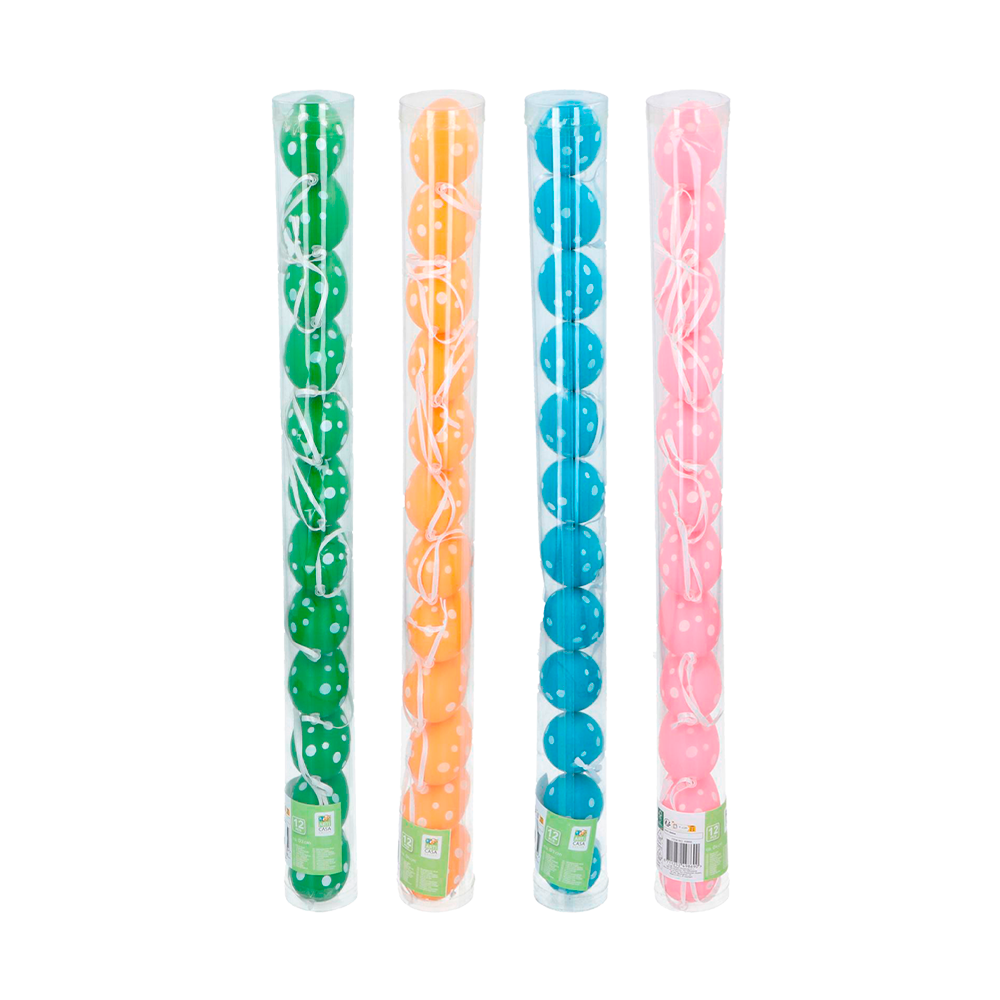 Skab klassisk påskestemning med dekorative påskeæg i fine farver. Æggene leveres i et praktisk rør med 12 stk. i 4 varianter og er velegnede til grene, dekorationer og kreative påskeprojekter. Ø. 6 cm.