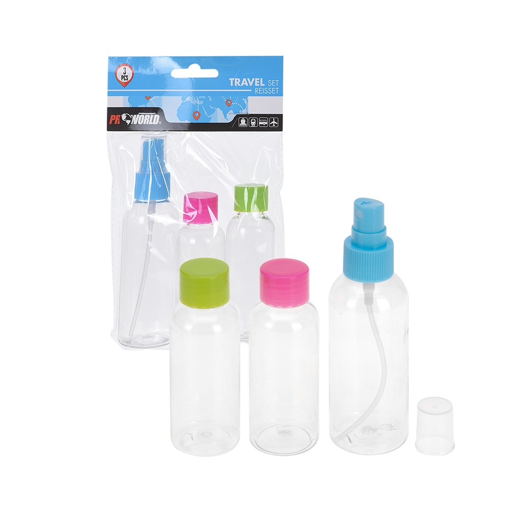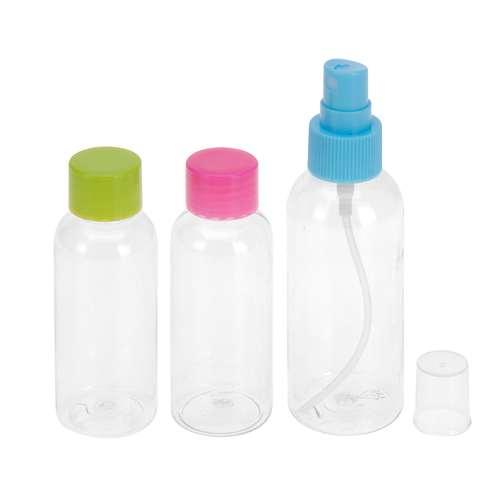 Sæt med 3 smarte rejseflasker med farvet låg. Prisen er pr. pakke.