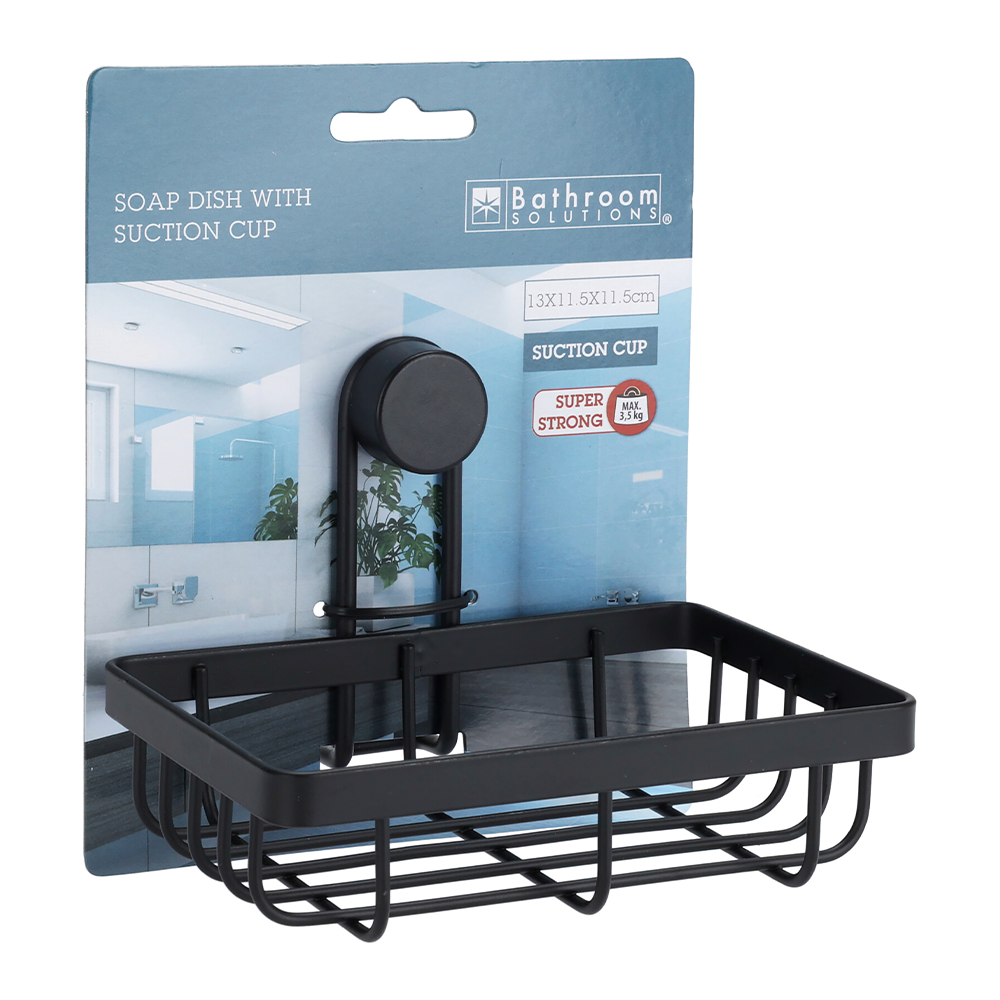Få styr på sæben med denne stilrene sæbeholder i sortlakeret metal. Den måler 13,4 x 11,5 x 11,5 cm og monteres nemt på væggen – perfekt til både badeværelse og køkken. Det åbne design lader vandet løbe af, så sæben holder sig tør og ren. En smart og moderne løsning til dig, der vil have funktion og æstetik i én.