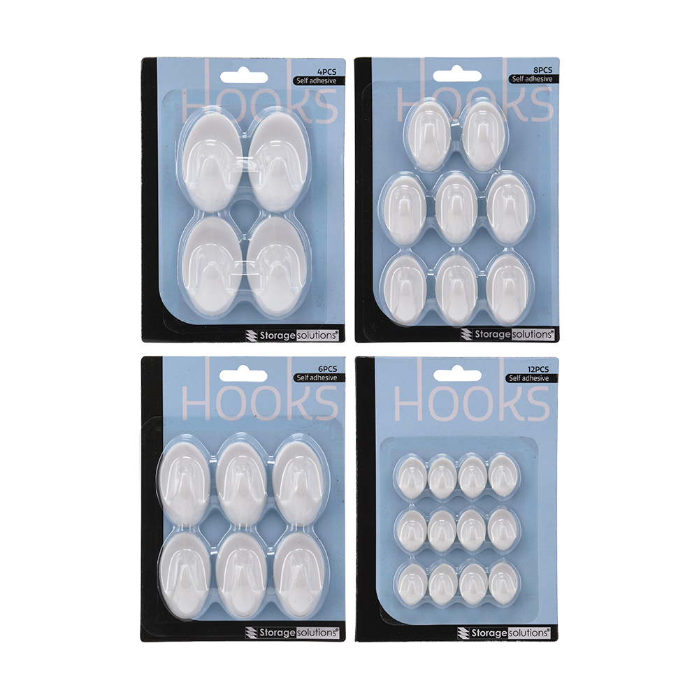 Gør ophængning let som en leg med disse praktiske selvklæbende kroge. Perfekte til køkkenet, badeværelset eller entreen, hvor du har brug for en hurtig og skrueløs løsning til viskestykker, nøgler eller småting. De hvide plastikdesigns er diskrete og nemme at sætte op på glatte overflader. Du får flere størrelser og antal pr. pakke – så der er noget til ethvert behov.