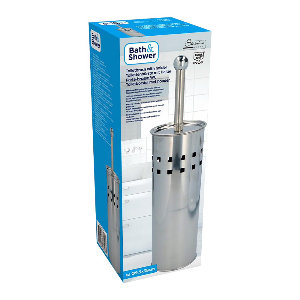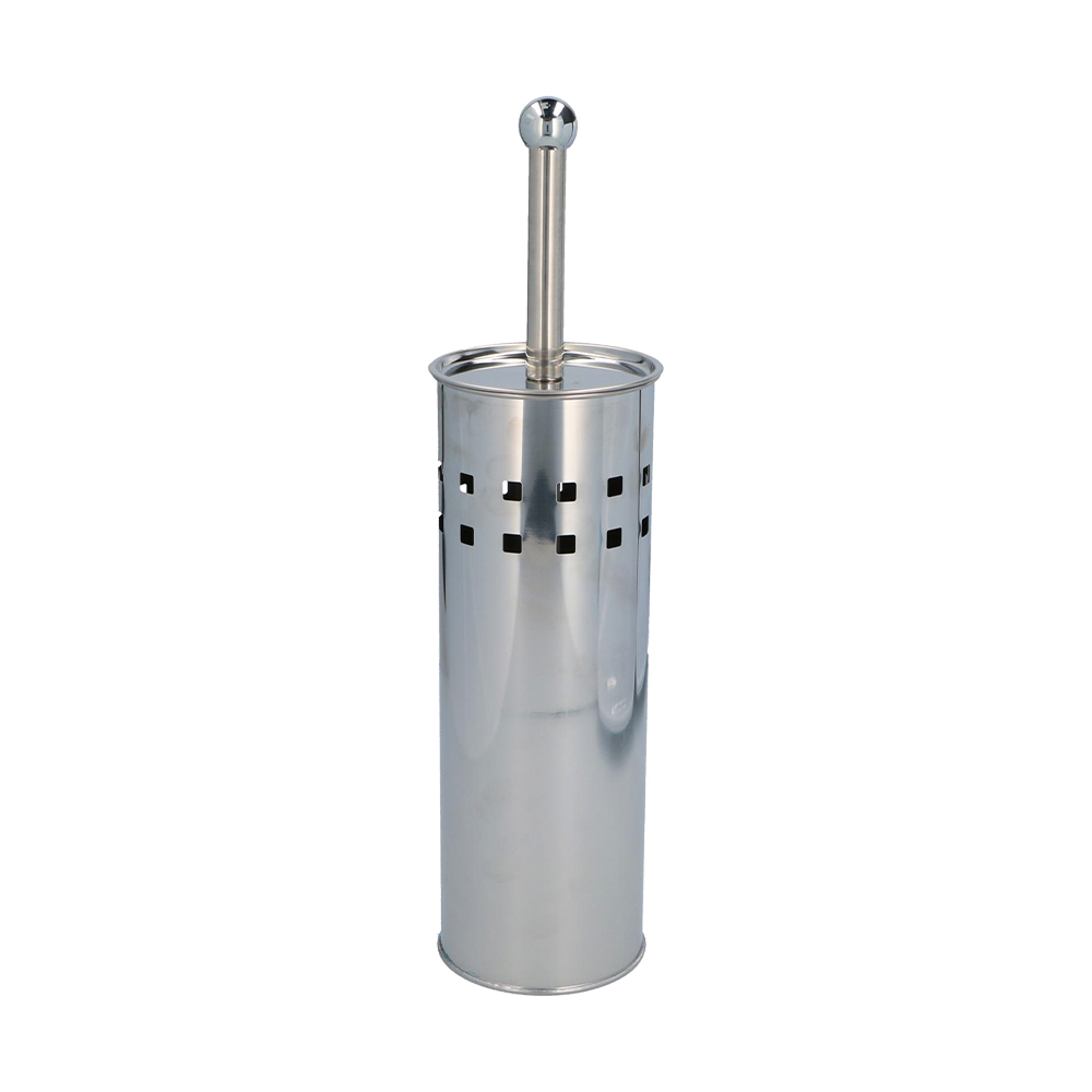 Hold badeværelset pænt og stilrent med denne funktionelle toiletbørste i sølvfarvet metal. Den medfølgende skål har udskæringer, der giver et moderne look og samtidig lader børsten tørre efter brug. Højden er 38 cm, så den er nem at placere diskret ved toilettet. Et praktisk valg til både hjemmet, sommerhuset eller gæstebadeværelset.