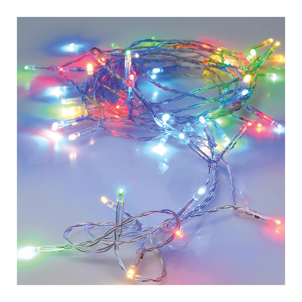 Giv julen et farverigt pust med en transparent wire med 80 multifarvede LED-lys. Den 800 cm lange kæde spreder et festligt og livligt lys, perfekt til juletræet, vinduet eller som dekoration i stuen. Den transparente ledning lader farverne skinne frit og skaber et legende udtryk i julepynten. Kun til indendørs brug.