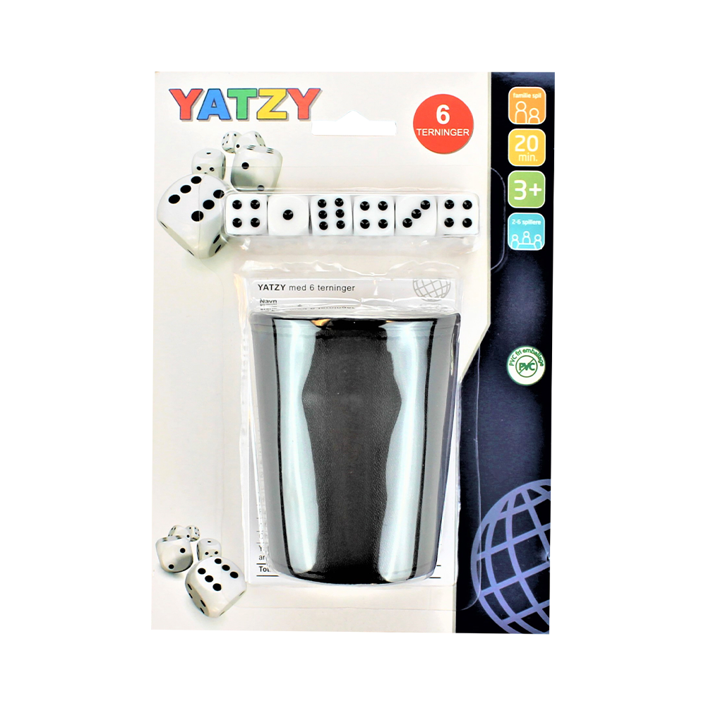 Yatzy med 6 terninger, bæger og yatzyblok. Prisen er pr. sæt.