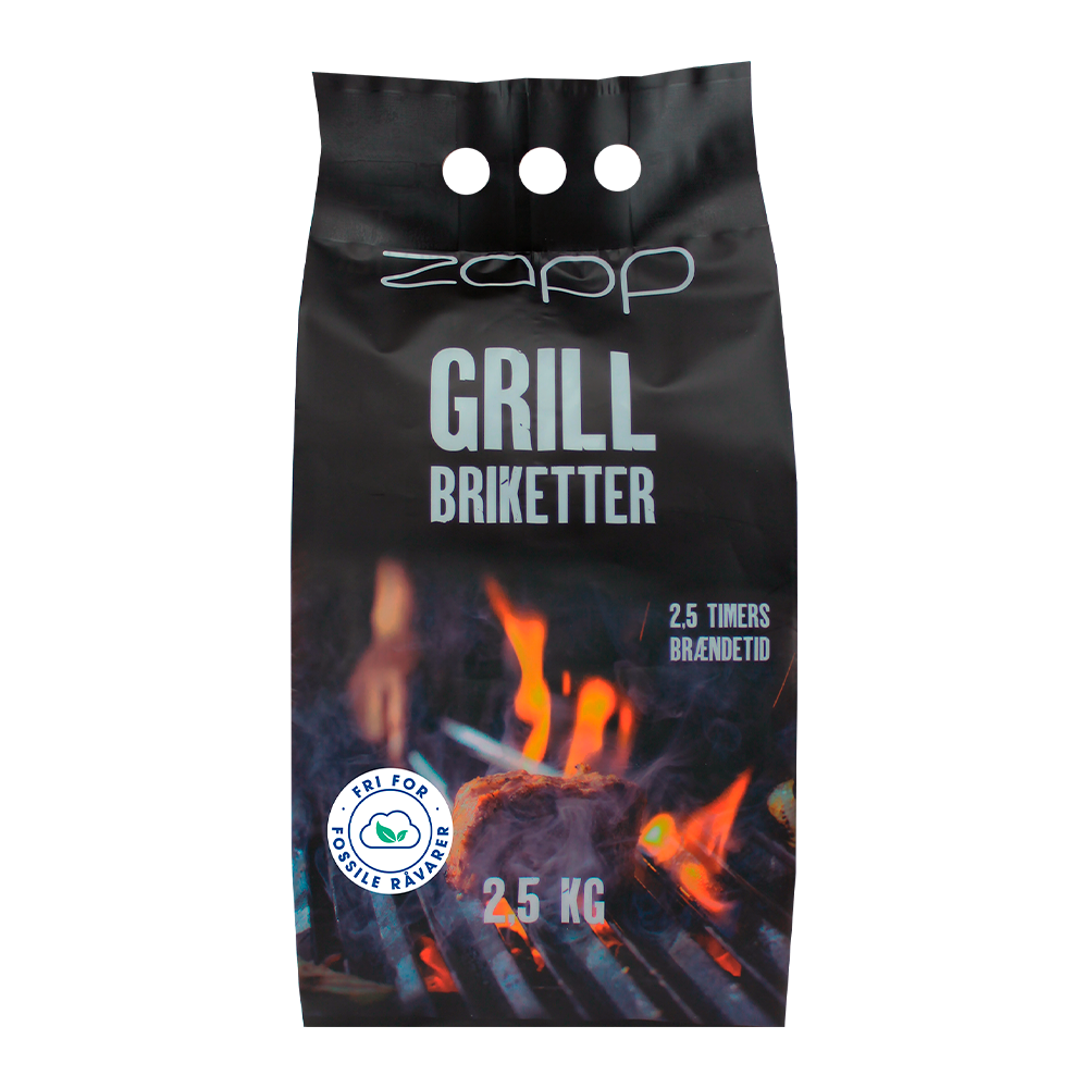 Grillbriketter fra Zapp til stabil og jævn varme under grillning. Velegnet til både kulgrill og større grillopgaver, hvor der er behov for længere brændetid. En praktisk løsning til sommerens grillmåltider i haven eller på terrassen. 2,5 kg.